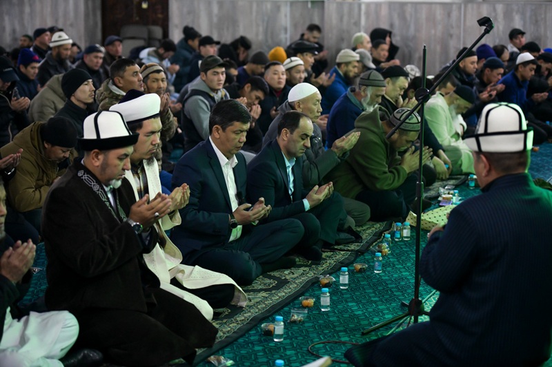 Иш-чаранын соңунда шаар башчысы жамаат менен бирге намаз окуп, ооз ачууга катышты.