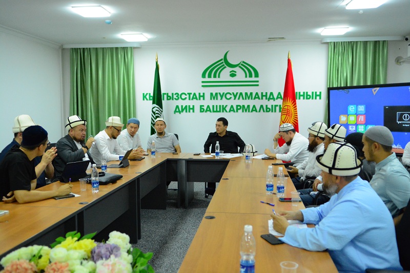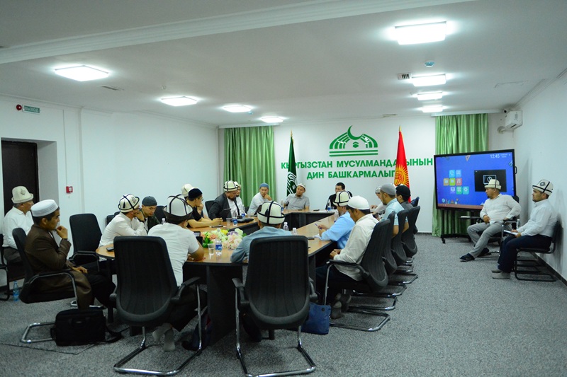 Азирети Муфтийдин 1-орун басары диний билим берүү жаатында бирдиктүү окуу программасы, окуу планы жана методика, тематикага ылайык билим берүүнүн зарылдыгы, билим берүү жөнүндөгү мыйзамдар жана талаптар, динге илимий мамиле жана сааттык жүктөмдөр боюнча маалымат берип, суроолорго жооп берди.
