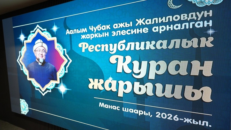 Манас шаарында экс-муфтий Чубак ажы Жалиловдун жаркын элесине арналган республикалык Куран жарышы өтүүдө