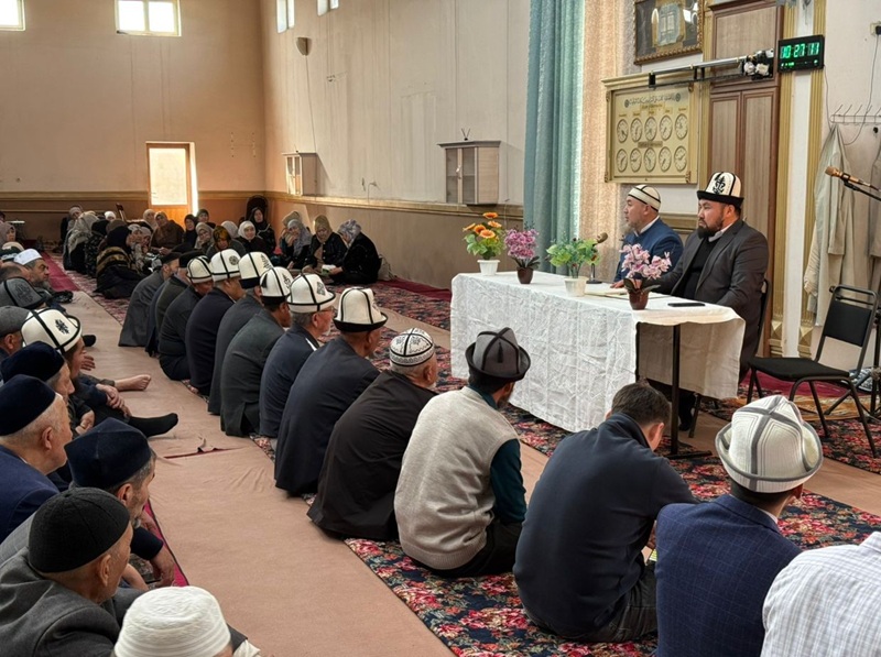 КМДБнын ажылык бөлүмүнүн адиси Абдулазиз ажы Туташбаев Ош облусуна жасаган расмий сапарынын алкагында Өзгөн районунан ажылык сапарга аттанган ажыларга атайын сабак өтүп, ажылык сапарга тиешелүү маселелерге токтолду.